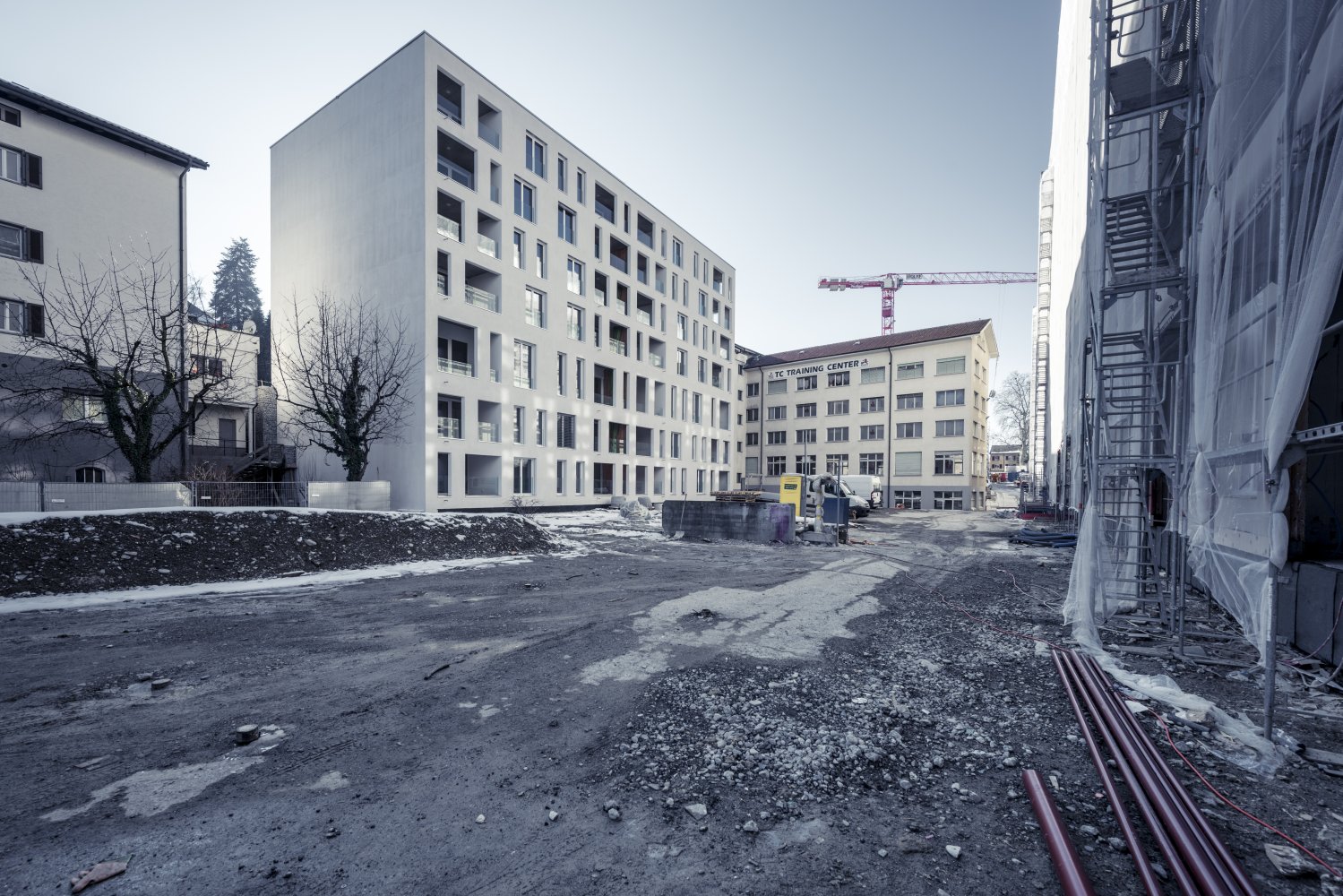 Aufstockung + Umnutzung + Umbau von Industriebauten. 115 Wohneinheiten + Tagesklinik + Gewerbeflächen + Verkauf + 12 Wohnungen STOWE.