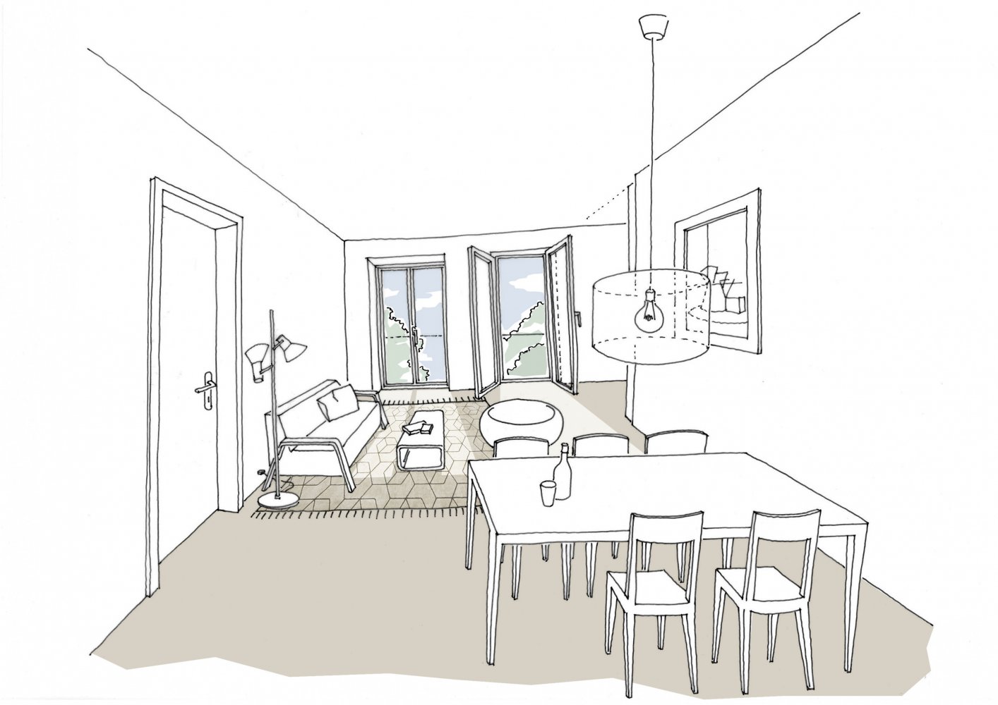 Die neuen Grundrisse weisen einen hohen Gebrauchswert auf, das Layout im umgestalteten 8. Obergeschoss ist stimmiger und die Raumabwicklungen sind spannender. Raumhohe Fenster vermitteln zwischen Innen und Aussen. Der architektonische Ausdruck scheint uns allgemein klarer und robuster. Alle Wohnungen sind barrierefrei zugänglich. Raum für gemeinschaftliche Begegnungen bietet der zenital mit Tageslicht belichtete Flur in der neugestalteten obersten Etage ‚Pérolles‘.