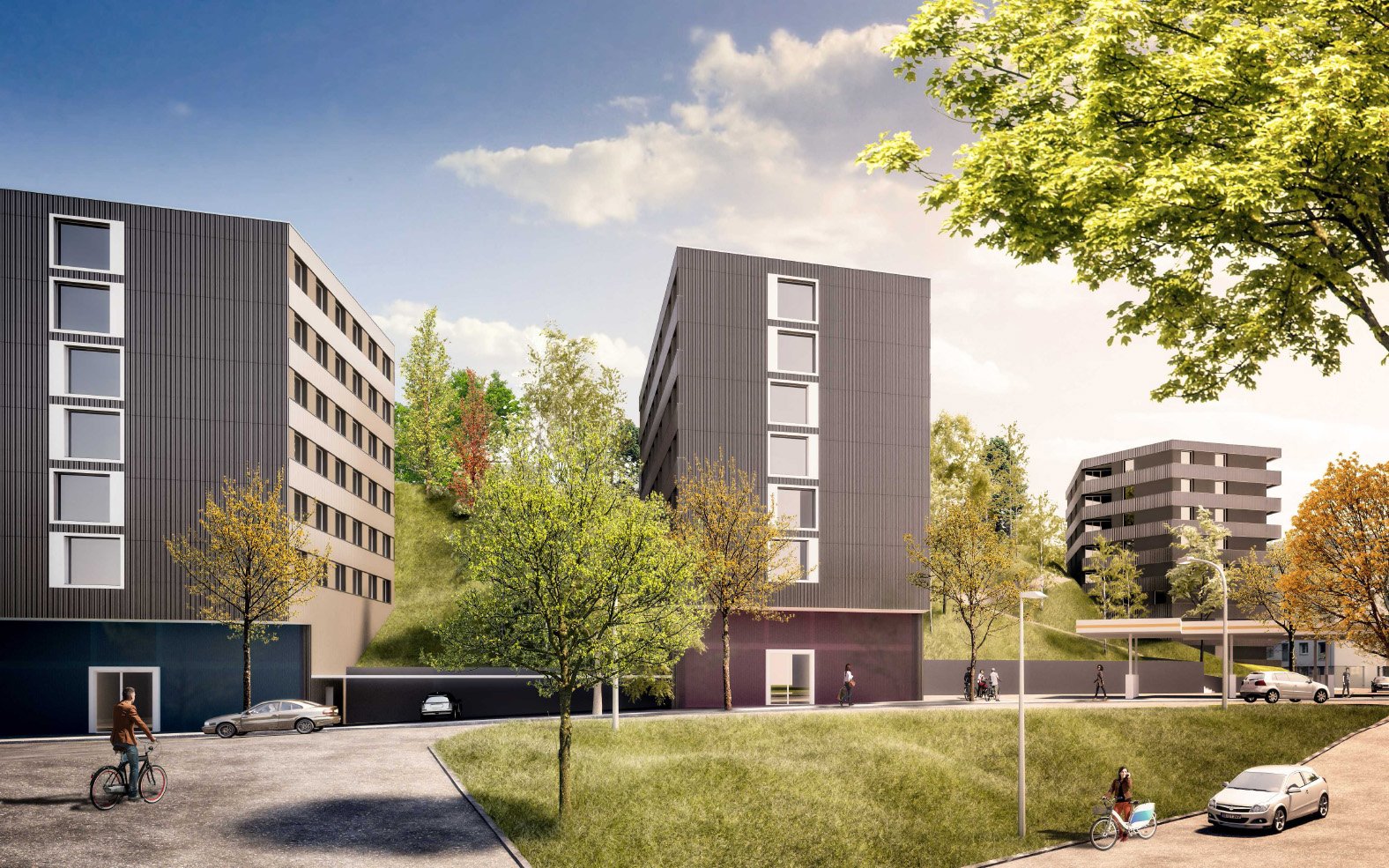 Das Projekt für die Anlagestiftung für Studentisches Wohnen APARTIS reiht sich in diesen post-industriellen Strukturwandel ein. Es wird von der Umgebung profitieren und das Quartier zusätzlich beleben. Die einzelnen Volumina werden quer zur steil aufragenden Hangkante der Butte de Pérolles errichtet. Dadurch wird die markante Eigenart der Topografie nicht verbaut, sondern durch den Rhythmus der gereihten und wie aus dem Hang herauswachsenden Baukörper sichtbar gemacht. Über zweigeschossigen Sockeln, die Nebenräume wie Fahrradkeller, Waschküchen und Abstellzonen beherbergen, erheben sich jeweils sechs Wohngeschosse. Insgesamt sind 413 Zimmer vorgesehen.